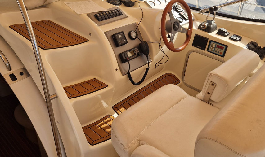 Il Mira è un motoryacht perfetto come day cruiser ma anche per gite più lunghe grazie ai generosi spazi interni. Sotto coperta troviamo grande cabina di prua con bagno e doccia, salottino con zona pranzo e cucina, un secondo bagno sempre con doccia e seconda cabina con letti singoli modificabili a matrimoniale.